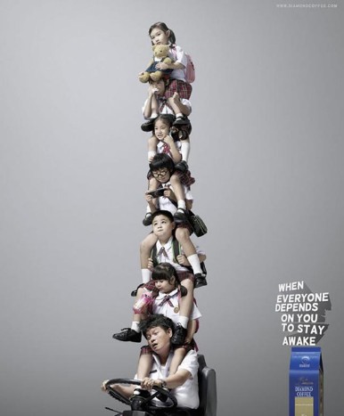 咖啡的創(chuàng)意廣告:當(dāng)孩子們將自己的安全都放心的交給你了,你還敢不保持清醒嗎?快來杯提升醒腦吧?。m說咖啡能提神,但是JIOJIO還是想說,開車不是兒戲,請(qǐng)司機(jī)朋友們一定要******睡眠充足,別疲勞駕駛和酒駕哦!)