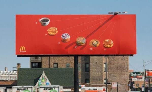 麥當(dāng)勞的創(chuàng)意戶外廣告:日晷的指針告訴你,這個(gè)時(shí)間點(diǎn),我們建議你來點(diǎn)什么吃的(真的是太貼心, 解決了JIOJIO多年的選擇恐懼癥)